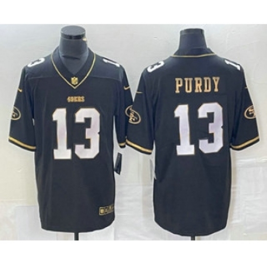 >Men's San Francisco 49ers #13 Brock Purdy Black Gold Vapor Untouchable Limited Stitched Jersey