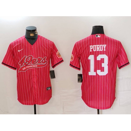 Men's San Francisco 49ers #13 Brock Purdy Red Pinstripe With Cool Base Stitched Baseball Jersey