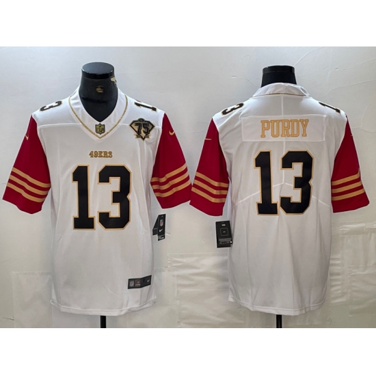 Men's San Francisco 49ers #13 Brock Purdy White 75th Golden Edition Stitched Nike Limited Jersey