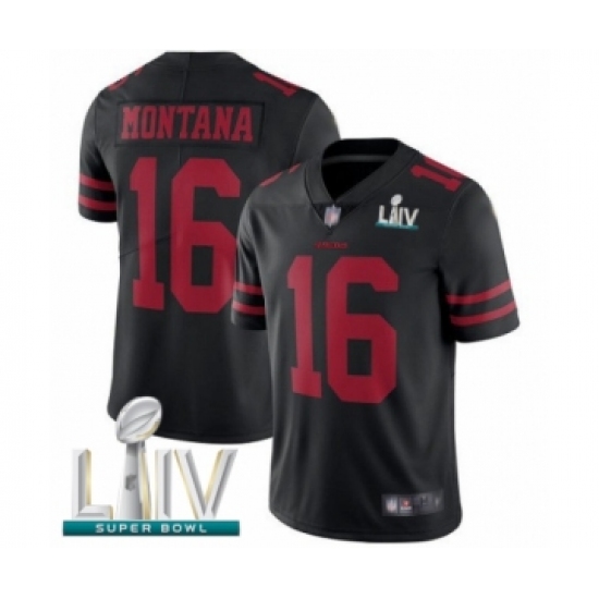 Men's San Francisco 49ers #16 Joe Montana Black Alternate Vapor Untouchable Limited Player Super Bowl LIV Bound Football Jersey