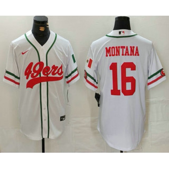 Men's San Francisco 49ers #16 Joe Montana White Mexico Cool Base Stitched Baseball Jersey