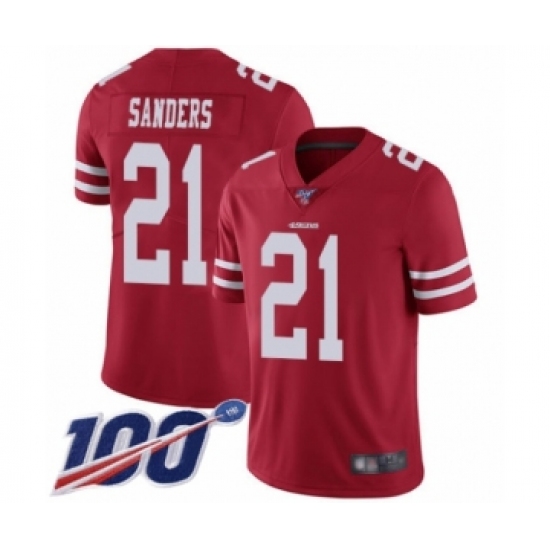 Men's San Francisco 49ers #21 Deion Sanders Red Team Color Vapor Untouchable Limited Player 100th Season Football Jersey