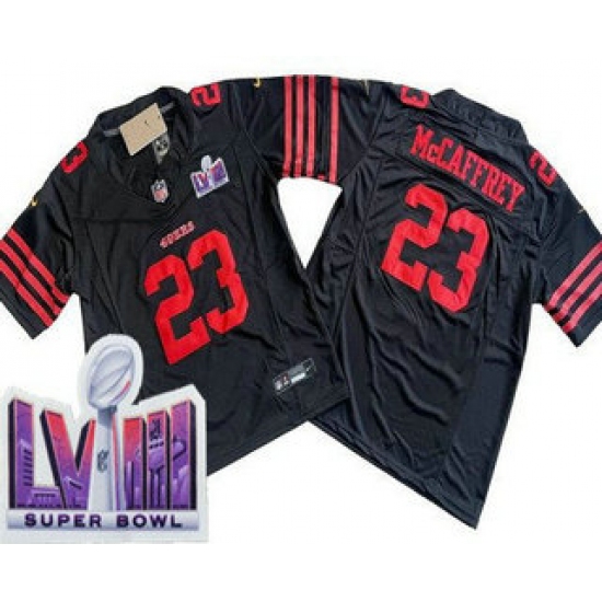 Men's San Francisco 49ers #23 Christian McCaffrey Limited Black LVIII Super Bowl FUSE Vapor Jersey