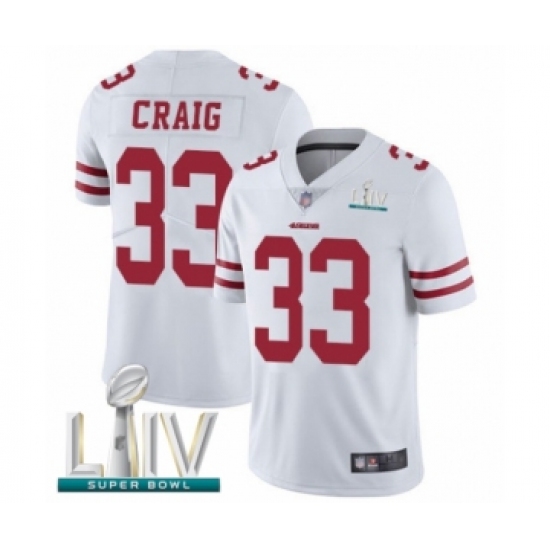 >Men's San Francisco 49ers #33 Roger Craig White Vapor Untouchable Limited Player Super Bowl LIV Bound Football Jersey