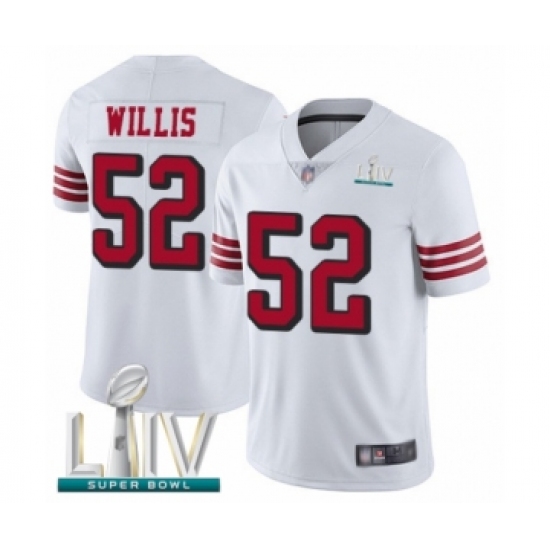 >Men's San Francisco 49ers #52 Patrick Willis Limited White Rush Vapor Untouchable Super Bowl LIV Bound Football Jersey