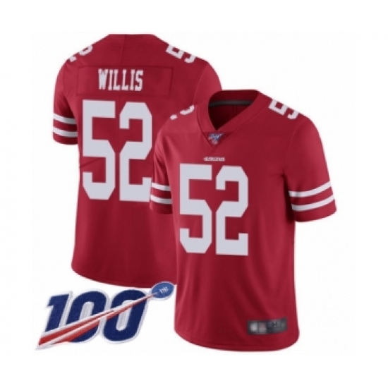 >Men's San Francisco 49ers #52 Patrick Willis Red Team Color Vapor Untouchable Limited Player 100th Season Football Jersey