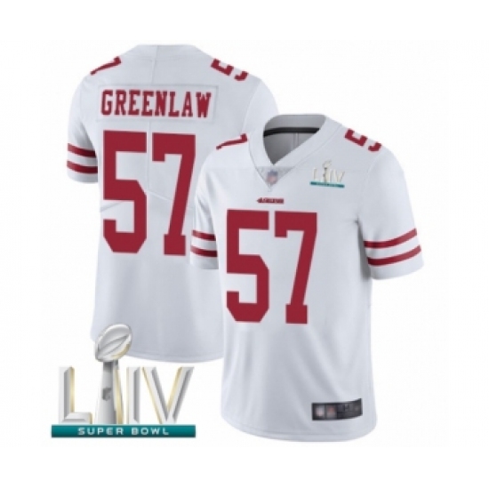 Men's San Francisco 49ers #57 Dre Greenlaw White Vapor Untouchable Limited Player Super Bowl LIV Bound Football Jersey