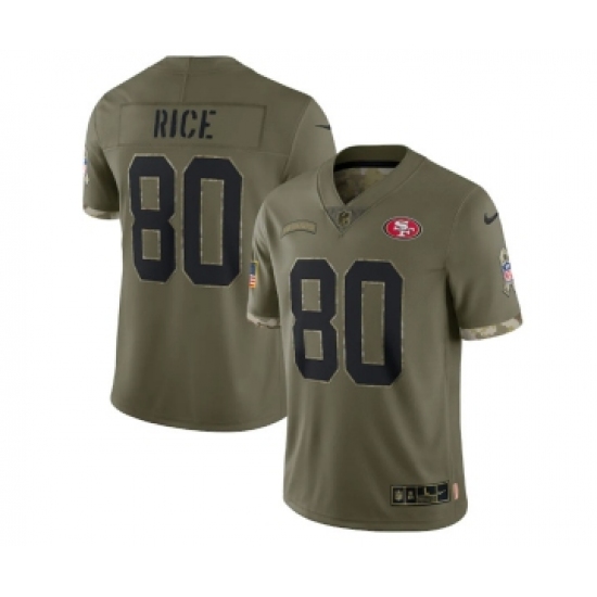 Men's San Francisco 49ers #80 Jerry Rice 2022 Olive Salute To Service Limited Stitched Jersey