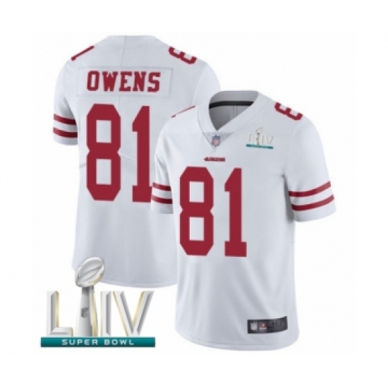 >Men's San Francisco 49ers #81 Terrell Owens White Vapor Untouchable Limited Player Super Bowl LIV Bound Football Jersey