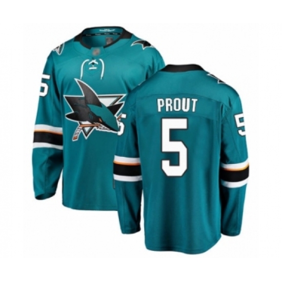>Men's San Jose Sharks #5 Dalton Prout Fanatics Branded Teal Green Home Breakaway Hockey Jersey