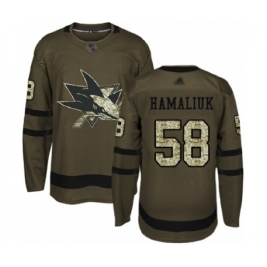 >Men's San Jose Sharks #58 Dillon Hamaliuk Authentic Green Salute to Service Hockey Jersey