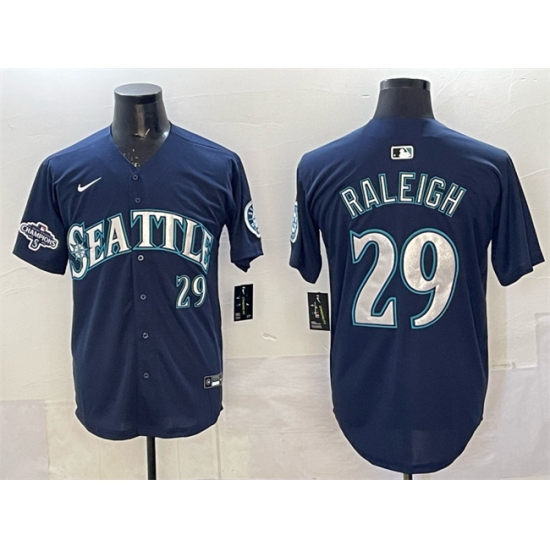 Men's Seattle Mariners #29 Cal Raleigh Navy With 2025 AL West Division Champions Limited Stitched jersey