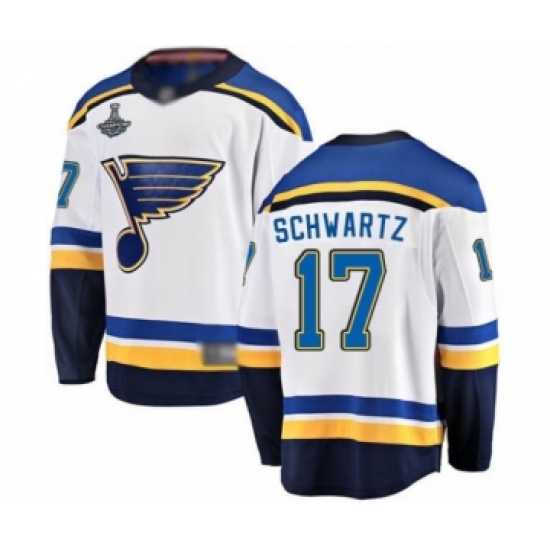 Men's St. Louis Blues #17 Jaden Schwartz Fanatics Branded White Away Breakaway 2019 Stanley Cup Champions Hockey Jersey