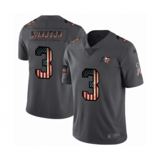 Men's Tampa Bay Buccaneers #3 Jameis Winston Limited Black USA Flag 2019 Salute To Service Football Jersey