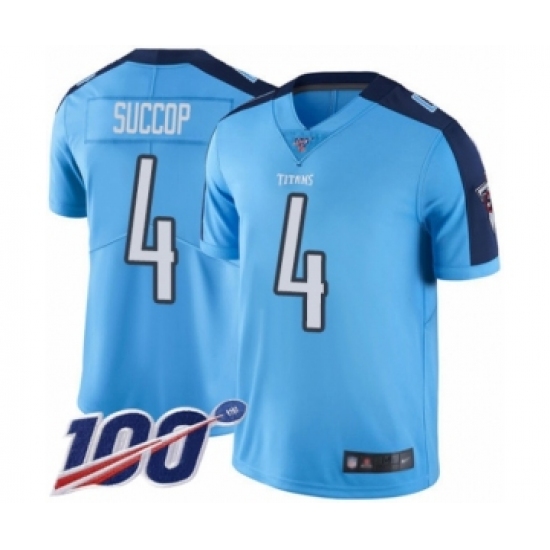 Men's Tennessee Titans #4 Ryan Succop Limited Light Blue Rush Vapor Untouchable 100th Season Football Jersey