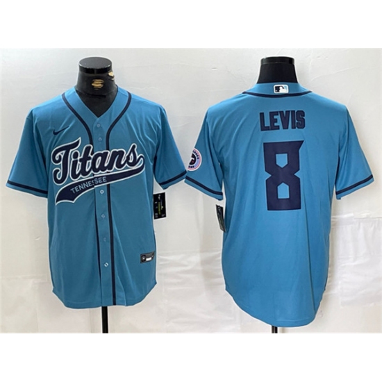 >Men's Tennessee Titans #8 Will Levis Blue With Cool Base Stitched Baseball Jersey