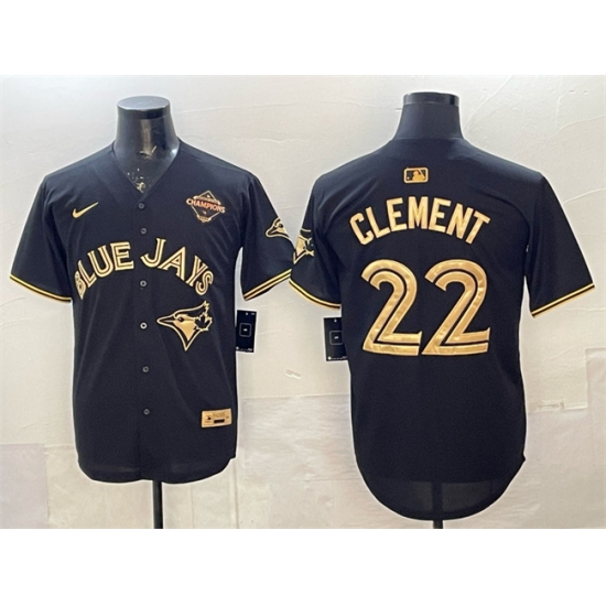 >Men's Toronto Blue Jays #22 Ernie Clement Black Gold 2025 American League Champions Limited Stitched Baseball Jersey