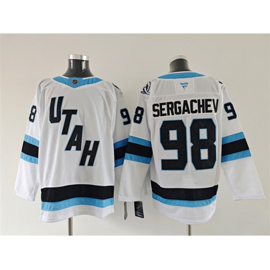 >Men's Utah Mammoth #98 Mikhail Sergachev White 2025 Stitched Jersey