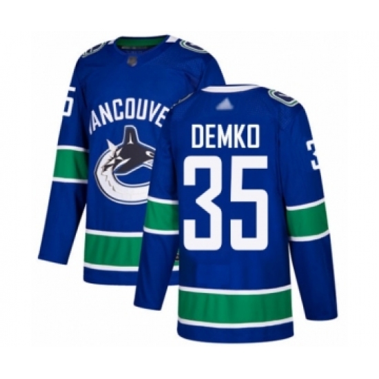 >Men's Vancouver Canucks #35 Thatcher Demko Authentic Blue Home Hockey Jersey