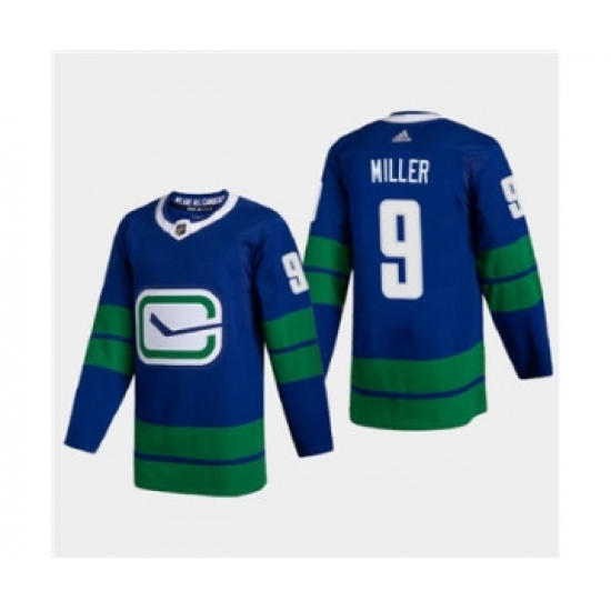 >Men's Vancouver Canucks #9 JT Miller 2020-21 Authentic Player Alternate Stitched Hockey Jersey Blue