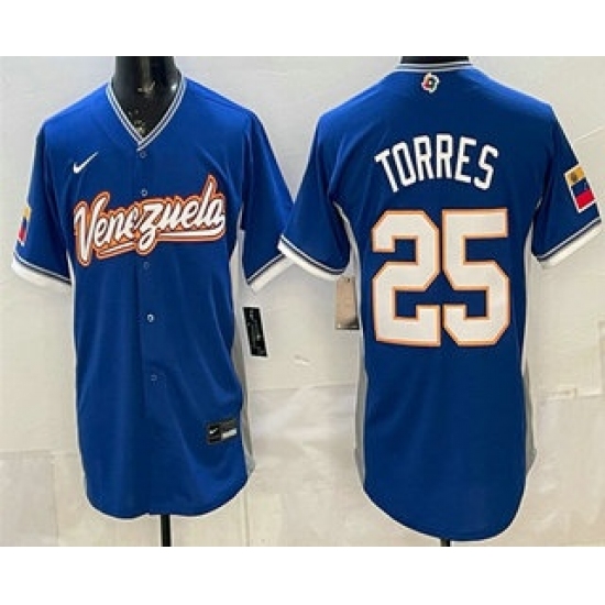 >Men's Venezuela #25 Gleyber Torres Blue 2026 World Baseball Classic Cool Base Jersey
