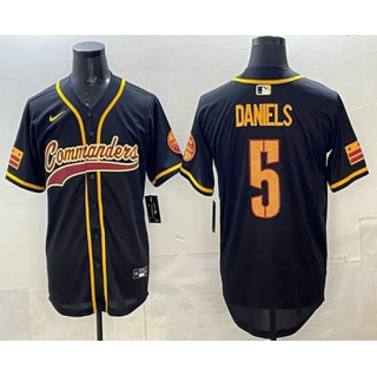 >Mens Washington Commanders #5 Jayden Daniels Black Limited Stitched Baseball Jersey