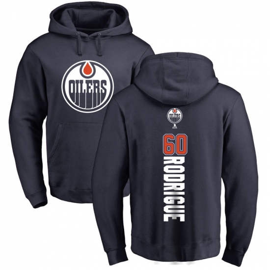 >NHL Adidas Edmonton Oilers #60 Olivier Rodrigue Navy Blue Backer Pullover Hoodie