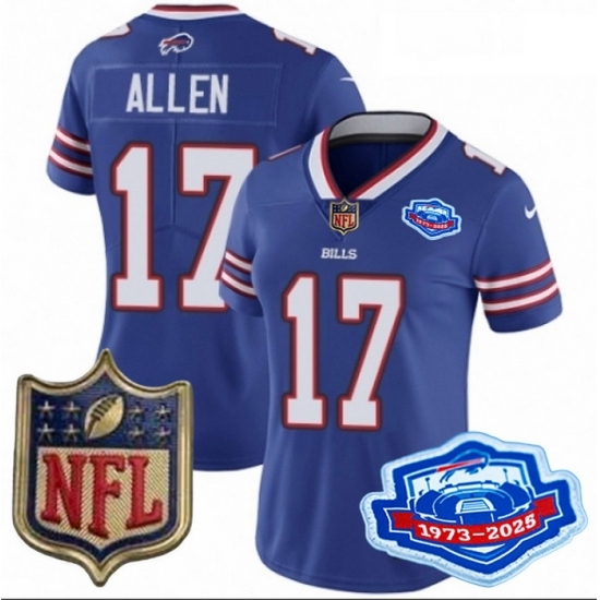 Women Buffalo Bills 17 Josh Allen Blue 2025 F U S E Farewell Season Gold Shield Stitched Football Jersey
