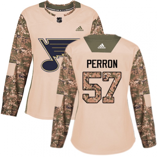 Women's Adidas St. Louis Blues #57 David Perron Authentic Camo Veterans Day Practice NHL Jersey