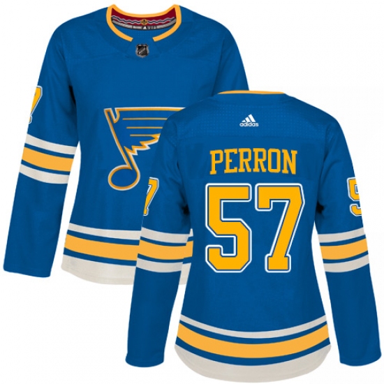 Women's Adidas St. Louis Blues #57 David Perron Authentic Royal Blue Home NHL Jersey
