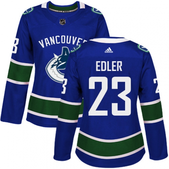 Home>NHL>Vancouver Canucks>Alexander Edler>Women's Adidas Vancouver Canucks #23 Alexander Edler Authentic Blue Home NHL Jersey