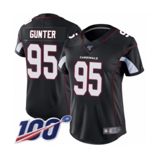 >Women's Arizona Cardinals #95 Rodney Gunter Black Alternate Vapor Untouchable Limited Player 100th Season Football Jersey