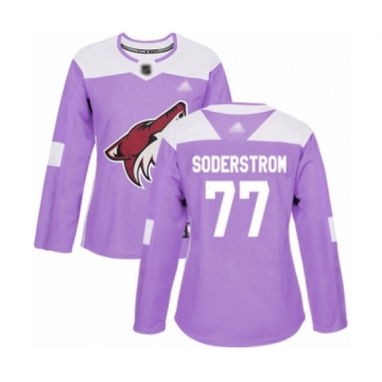 >Women's Arizona Coyotes #77 Victor Soderstrom Authentic Purple Fights Cancer Practice Hockey Jersey