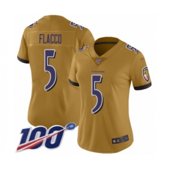 >Women's Baltimore Ravens #5 Joe Flacco Limited Gold Inverted Legend 100th Season Football Jersey