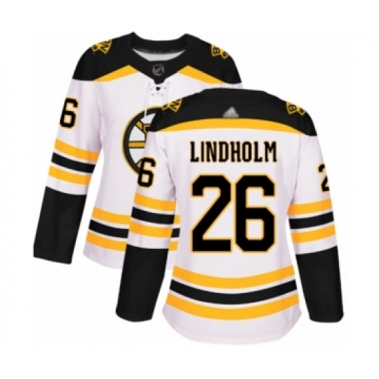Women's Boston Bruins #26 Par Lindholm Authentic White Away Hockey Jersey