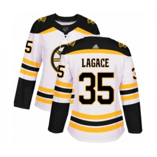 Women's Boston Bruins #35 Maxime Lagace Authentic White Away Hockey Jersey