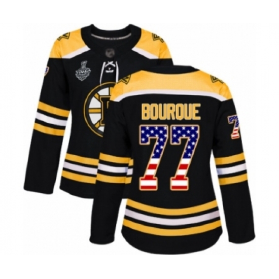 >Women's Boston Bruins #77 Ray Bourque Authentic Black USA Flag Fashion 2019 Stanley Cup Final Bound Hockey Jersey