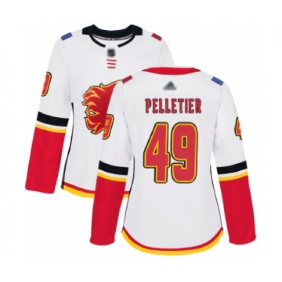 >Women's Calgary Flames #49 Jakob Pelletier Authentic White Away Hockey Jersey