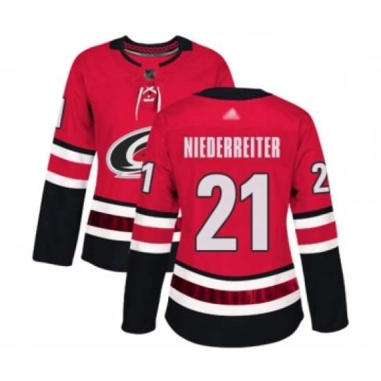 Women's Carolina Hurricanes #21 Nino Niederreiter Authentic Red Home Hockey Jersey