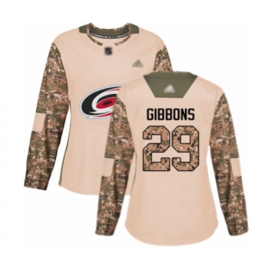 >Women's Carolina Hurricanes #29 Brian Gibbons Authentic Camo Veterans Day Practice Hockey Jersey