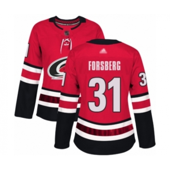 >Women's Carolina Hurricanes #31 Anton Forsberg Authentic Red Home Hockey Jersey