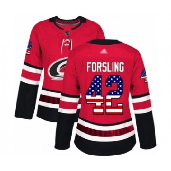 >Women's Carolina Hurricanes #42 Gustav Forsling Authentic Red USA Flag Fashion Hockey Jersey
