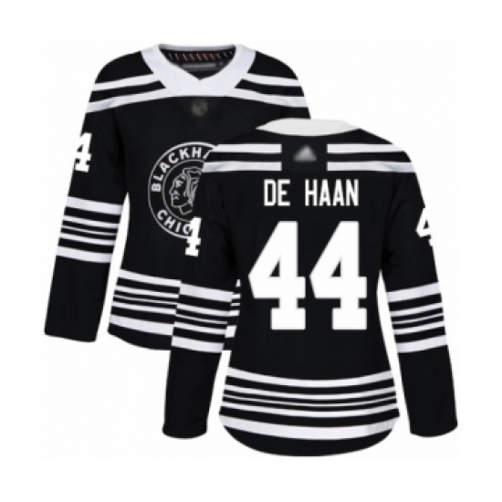 >Women's Chicago Blackhawks #44 Calvin De Haan Authentic Black Alternate Hockey Jersey