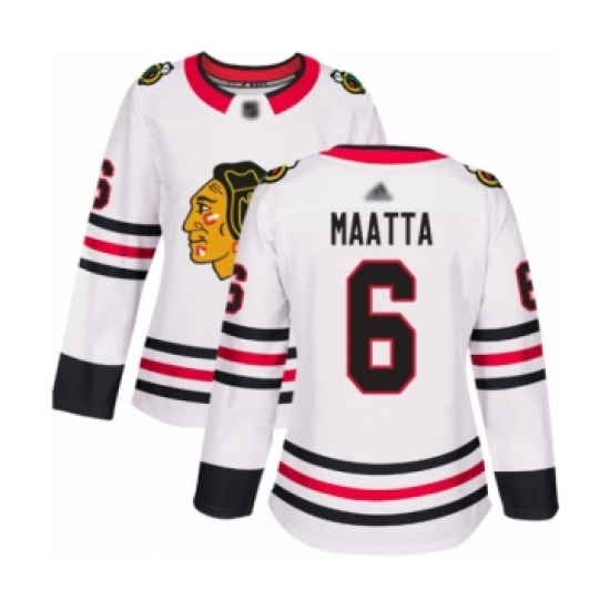 Women's Chicago Blackhawks #6 Olli Maatta Authentic White Away Hockey Jersey