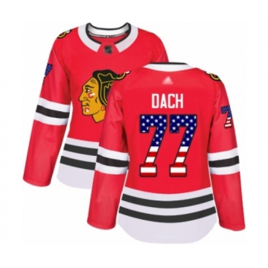 Women's Chicago Blackhawks #77 Kirby Dach Authentic Red USA Flag Fashion Hockey Jersey