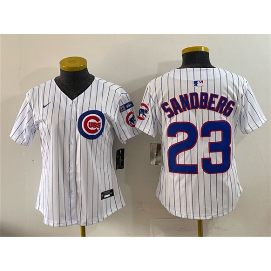 Women's Chicago Cubs #23 Ryne Sandberg White Pinstripe 'Ryne Sandberg Tribute' Vapor Limited V3 Stitched Baseball Jersey(Run Small)
