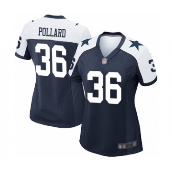 >Women's Dallas Cowboys #36 Tony Pollard Game Navy Blue Throwback Alternate Football Jersey