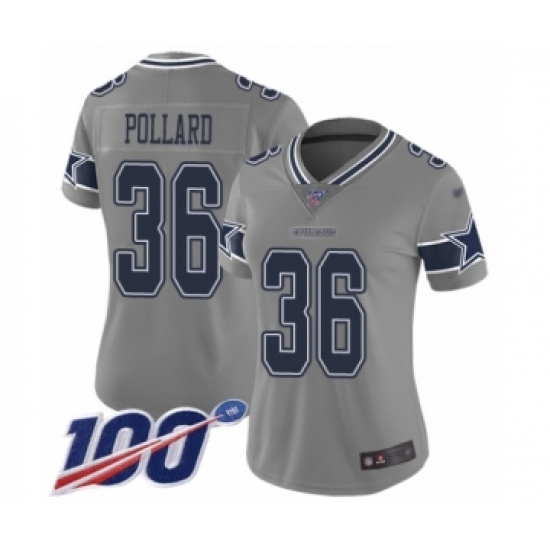 >Women's Dallas Cowboys #36 Tony Pollard Limited Gray Inverted Legend 100th Season Football Jersey