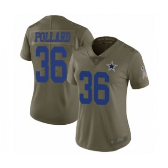 >Women's Dallas Cowboys #36 Tony Pollard Limited Olive 2017 Salute to Service Football Jersey