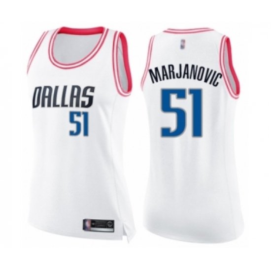 Women's Dallas Mavericks #51 Boban Marjanovic Swingman White Pink Fashion Basketball Jersey